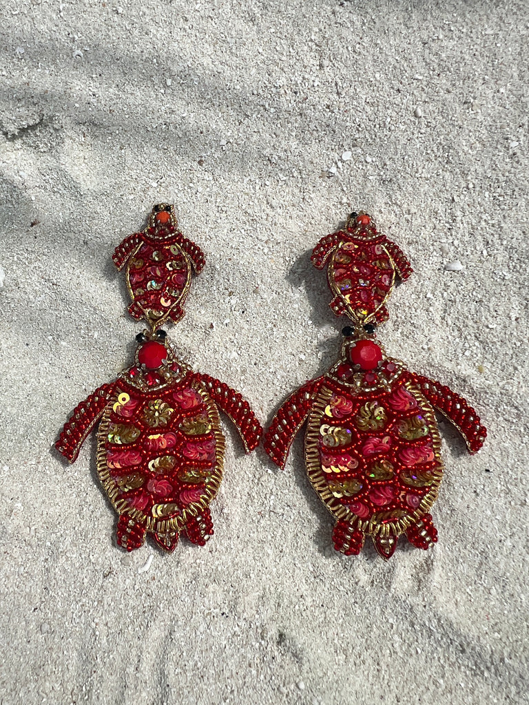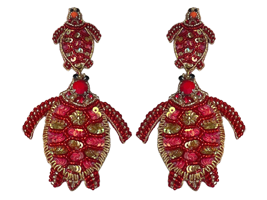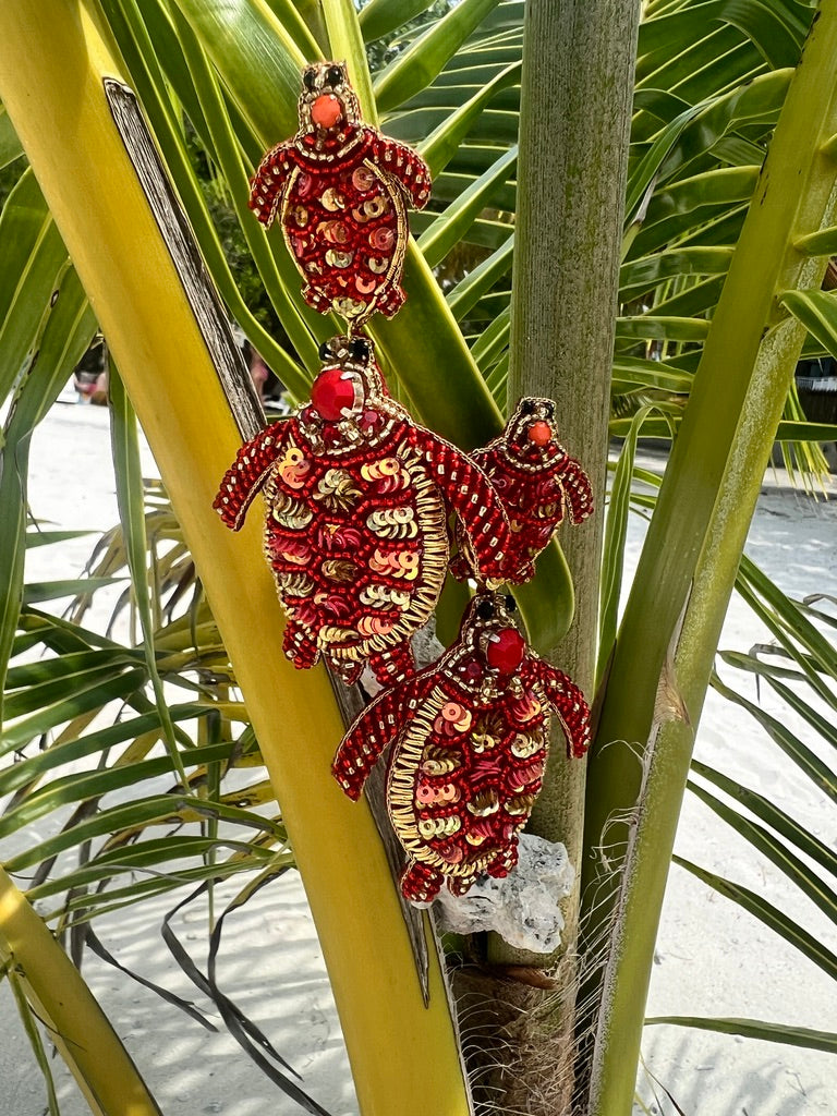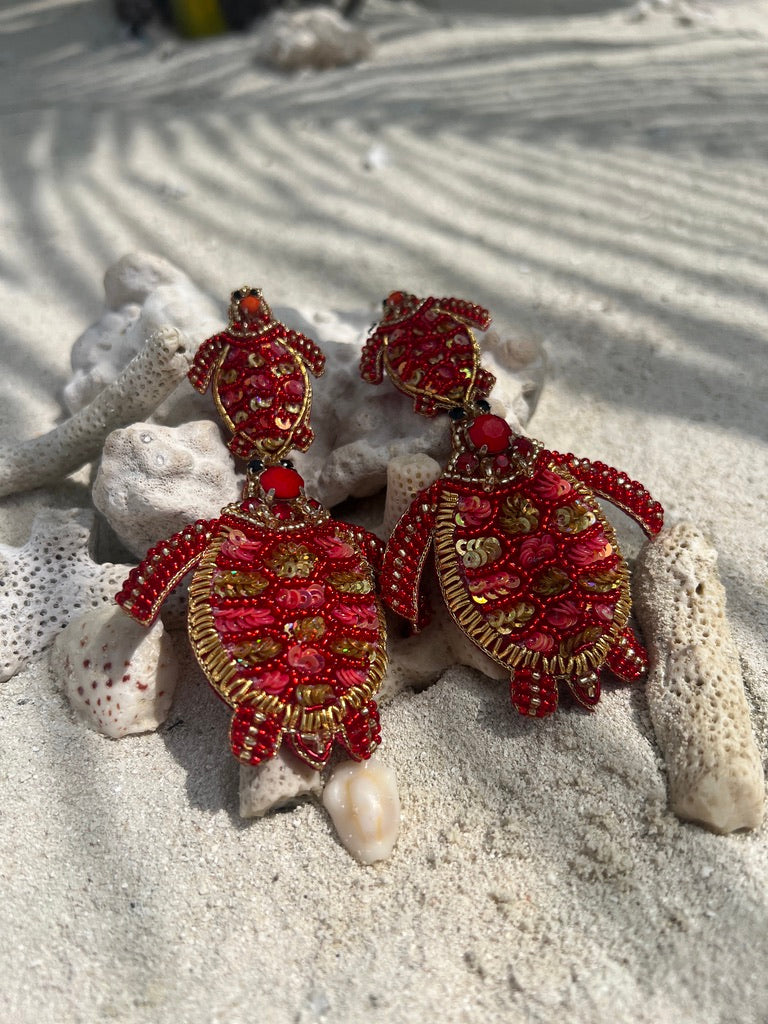 Diese einzigartigen Ohrringe in Schildkrötenform sind mit viel Liebe zum Detail aus kleinen roten und goldenen Perlen gefertigt. Das farbenfrohe Design macht sie zu einem besonderen Hingucker und verleiht jedem Outfit eine verspielte Note. Die leichte Verarbeitung sorgt für ein angenehmes Tragegefühl – ideal für den Alltag, den Urlaub oder festliche Anlässe.